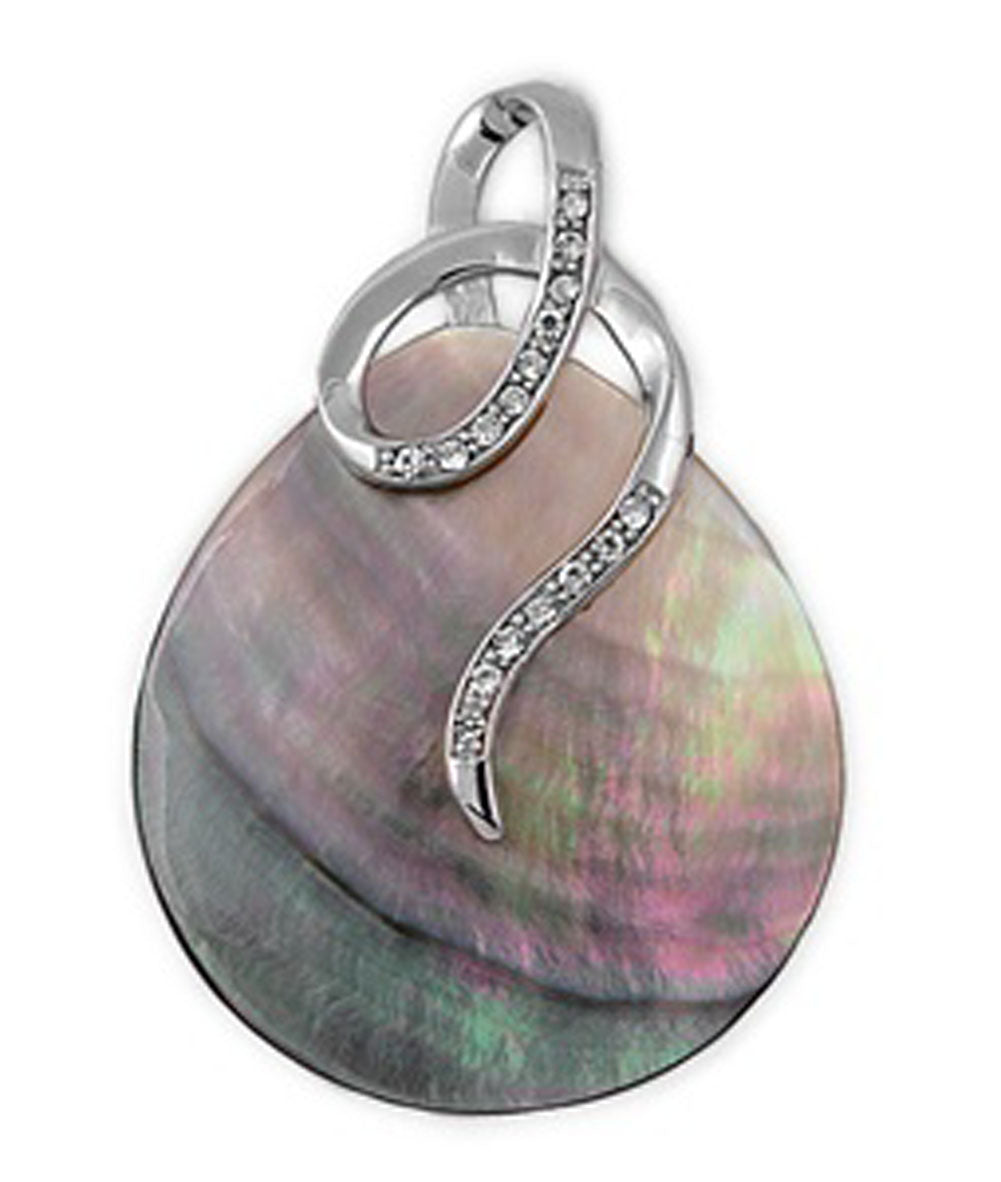 Swirl Knot Teardrop Pendant Simulated Abalone .925 Sterling Silver Ribbon Charm