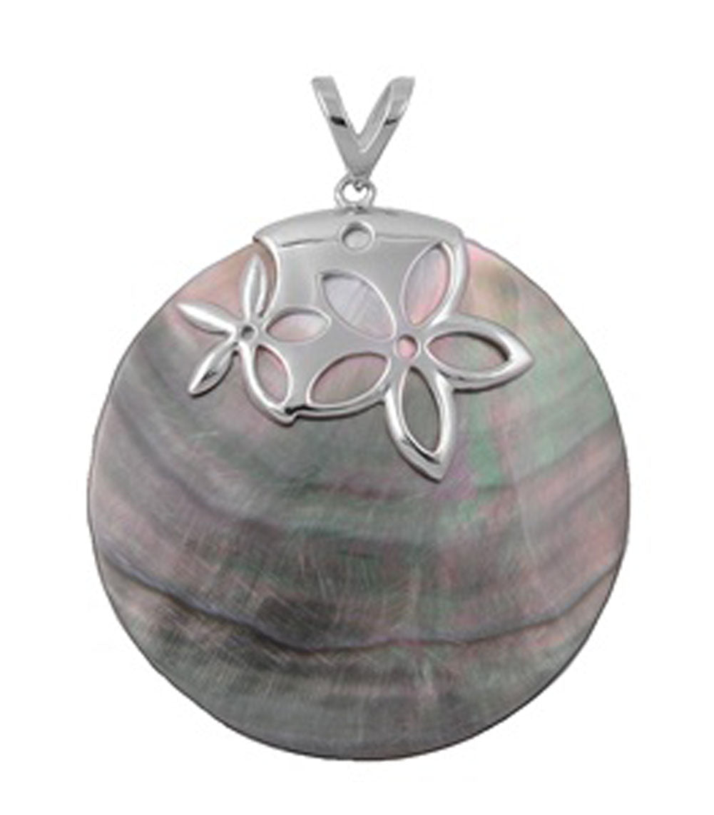 Cute Cutout Flower Pendant Simulated Abalone .925 Sterling Silver Daisy Charm