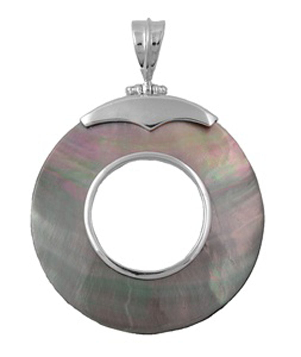 Nautical Open Circle Pendant Simulated Abalone .925 Sterling Silver Large Charm
