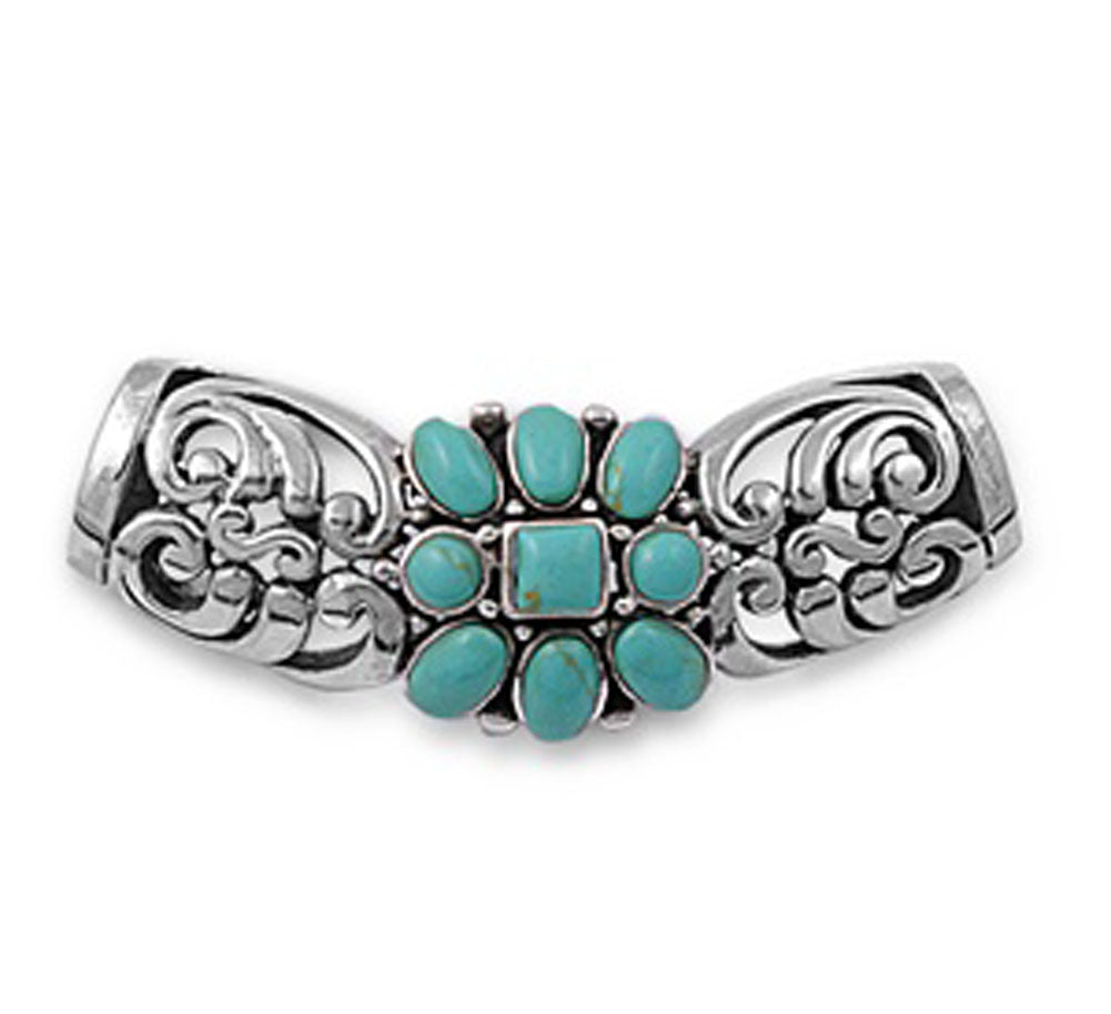 Floral Filigree Slide Pendant Simulated Turquoise .925 Sterling Silver Charm