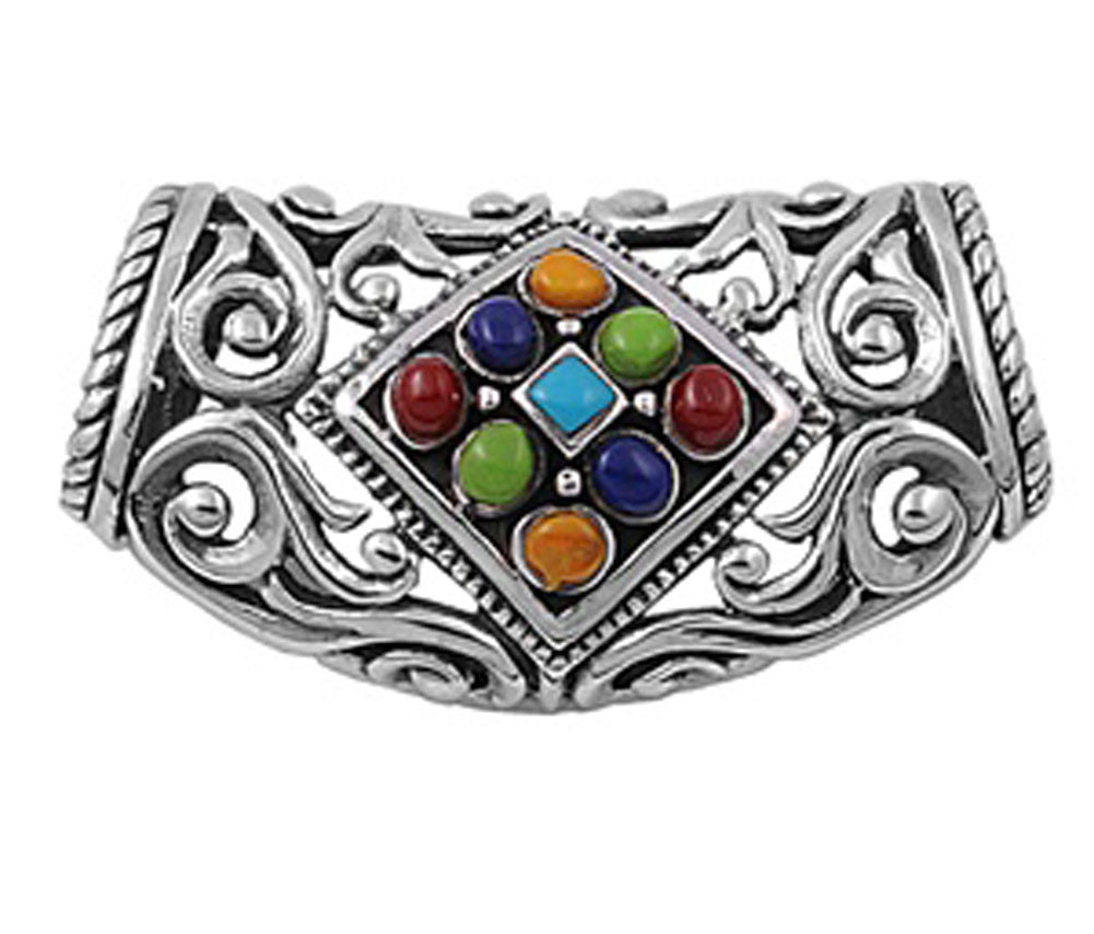 Sterling Silver Multi Color Bali Swirl Slide Pendant Simulated Turquoise Charm