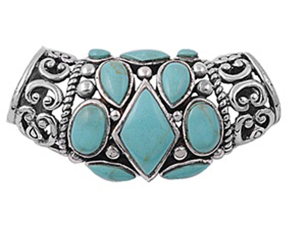 Bali Filigree Slide Pendant Simulated Turquoise .925 Sterling Silver Rope Charm