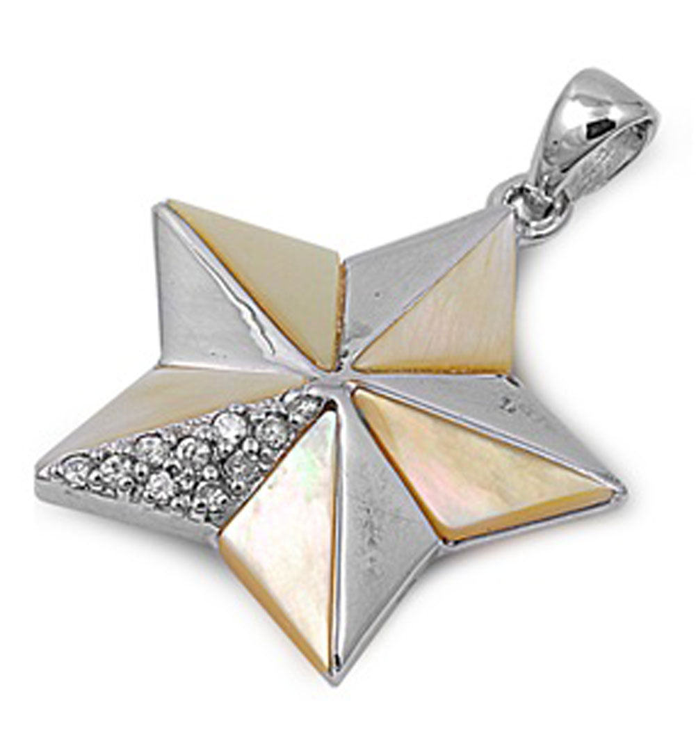 Sterling Silver Dual-Tone Contrast Cluster Star Pendant Clear Simulated CZ Charm