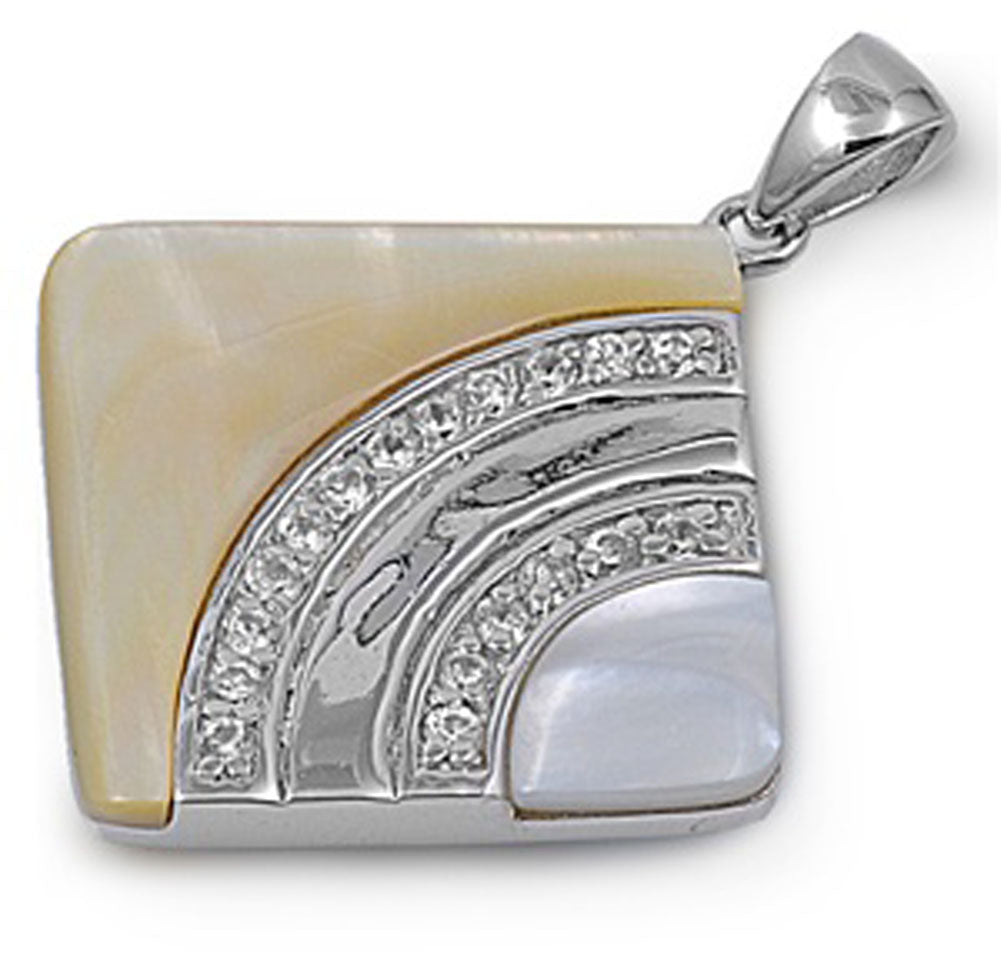 Sterling Silver Abstract Rounded Square Pendant Simulated Mother of Pearl Charm