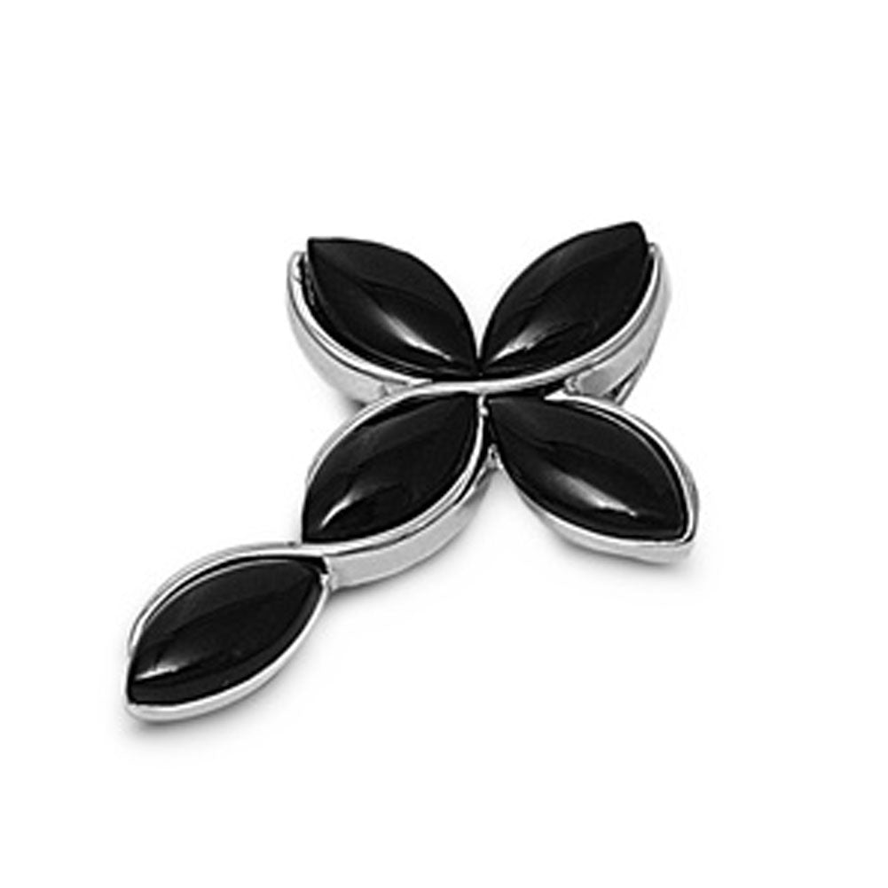 Sterling Silver Twisted Knot Petal Cross Pendant Black Simulated Onyx Charm