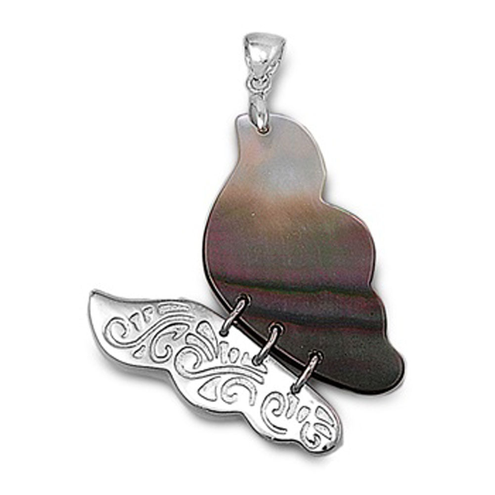 Hinge Wing Butterfly Pendant Simulated Abalone .925 Sterling Silver Shiny Charm