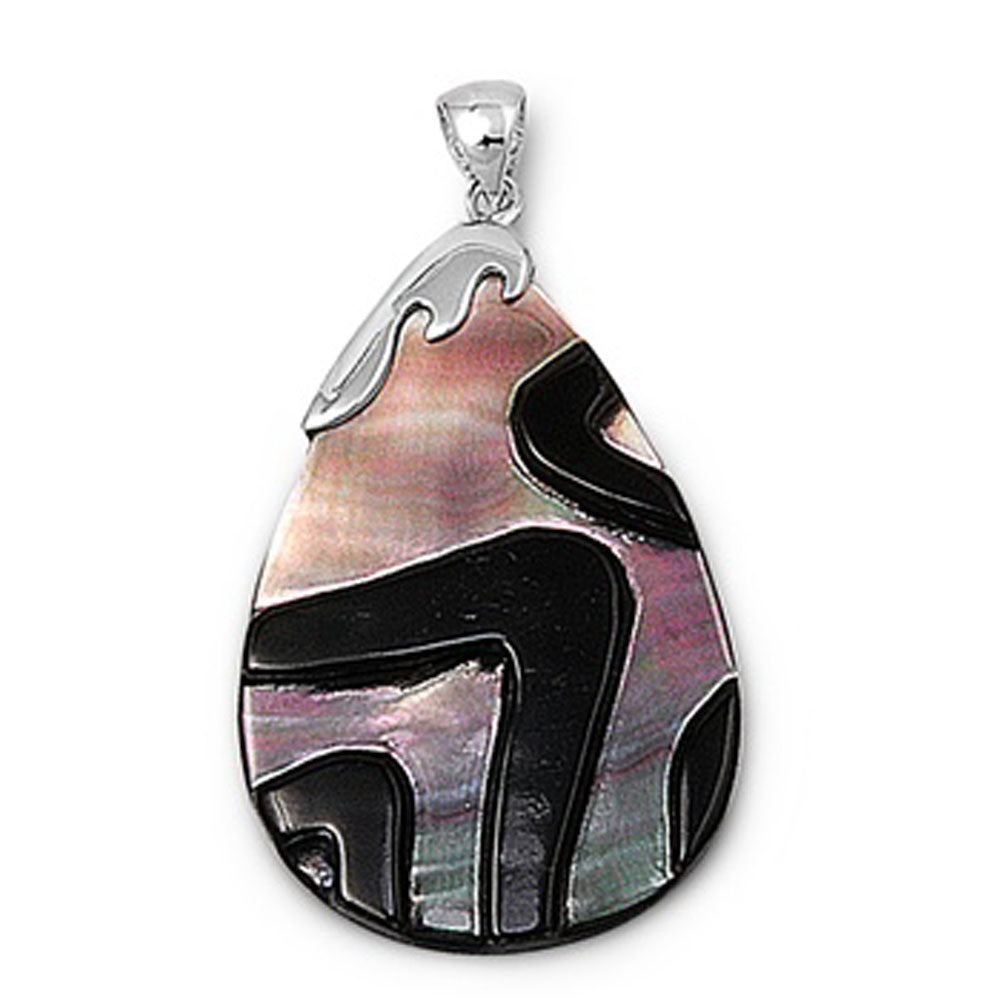 Sterling Silver Multi Color Zig Zag Teardrop Pendant Simulated Abalone Charm