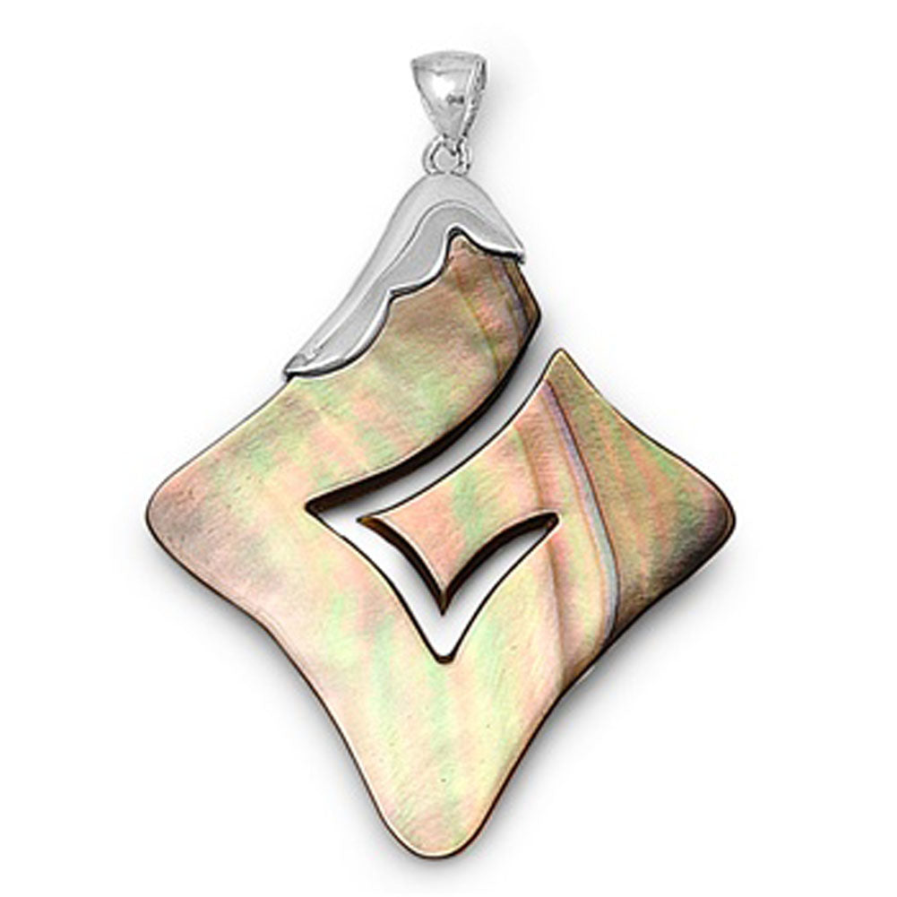 Abstract Cutout Spiral Pendant Simulated Abalone .925 Sterling Silver Charm