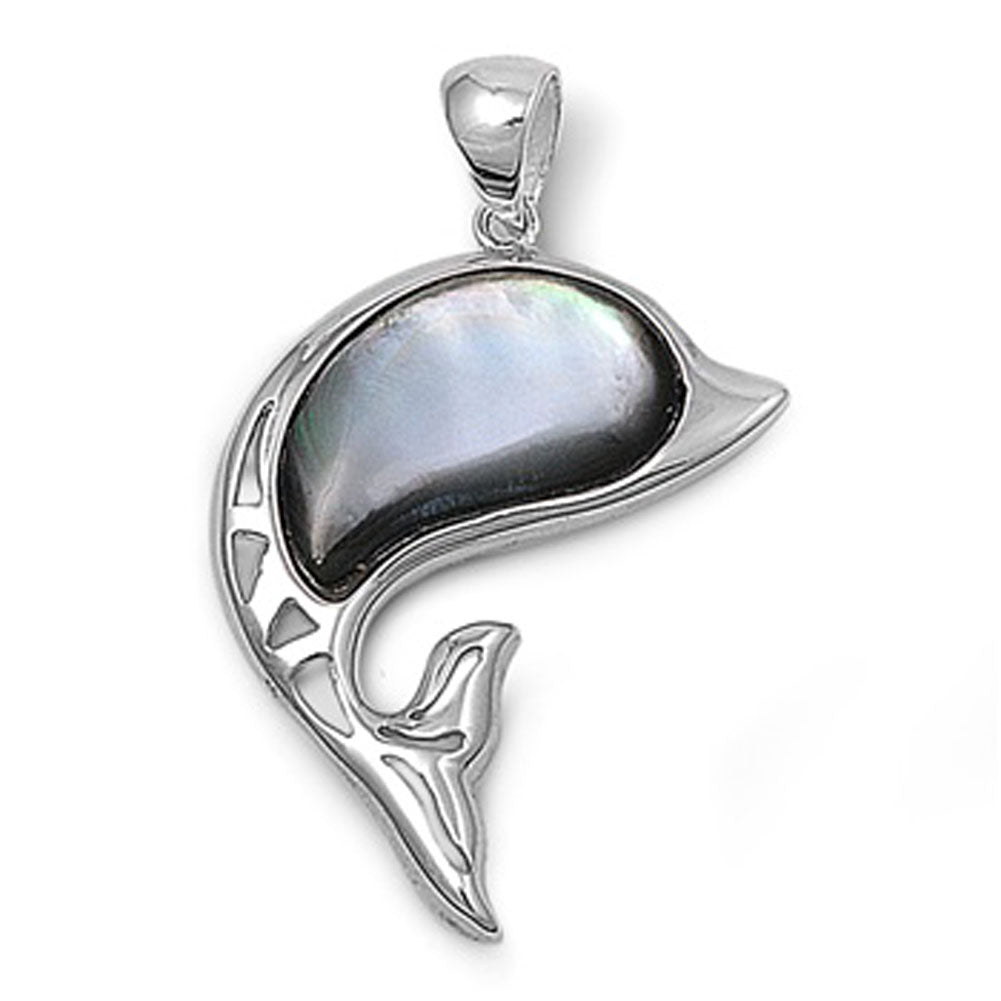 Cutout Dolphin Pendant Simulated Abalone .925 Sterling Silver Sea Ocean Charm
