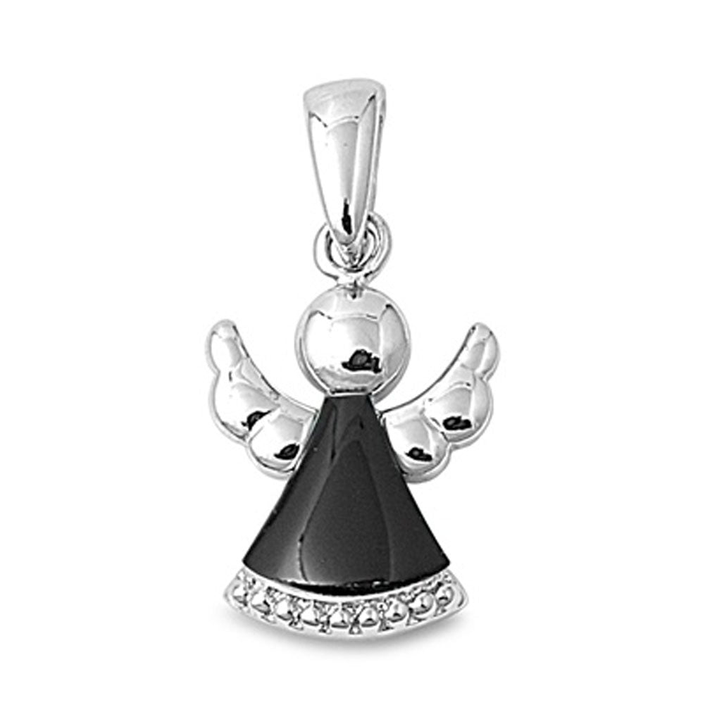 Cute Shiny Angel Pendant Black Simulated Onyx .925 Sterling Silver Charm