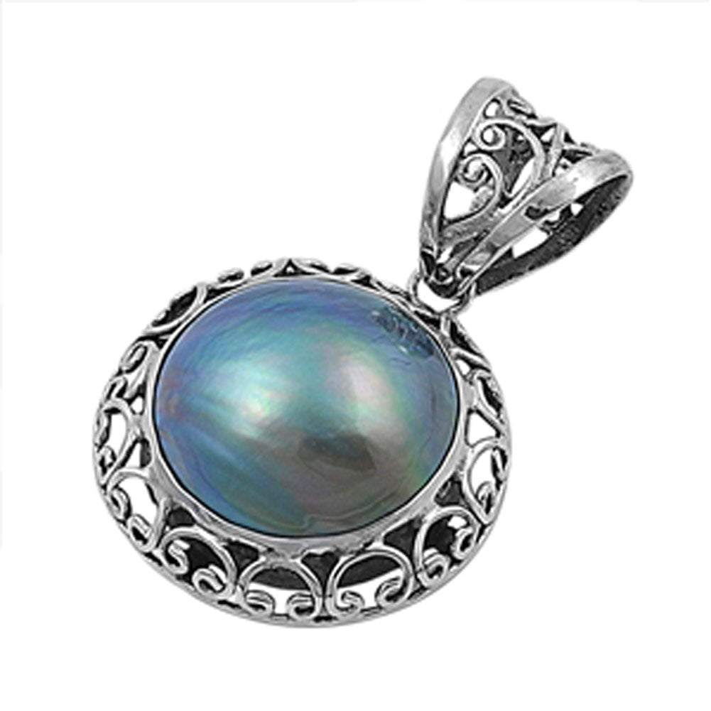 Polished Swirl Halo Pendant Simulated Pearl .925 Sterling Silver Filigree Charm