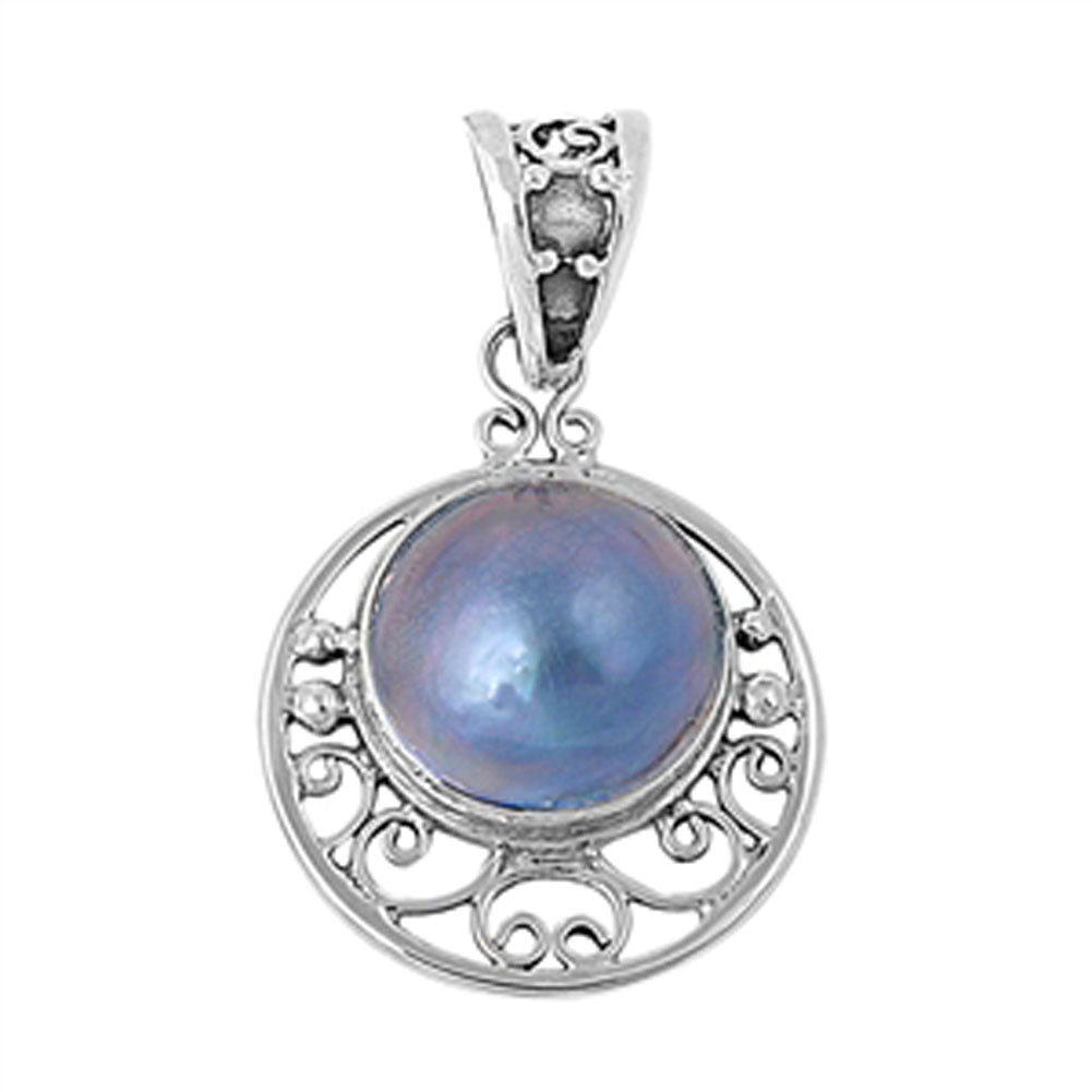 Ornate Filigree Swirl Circle Pendant Simulated Pearl .925 Sterling Silver Charm