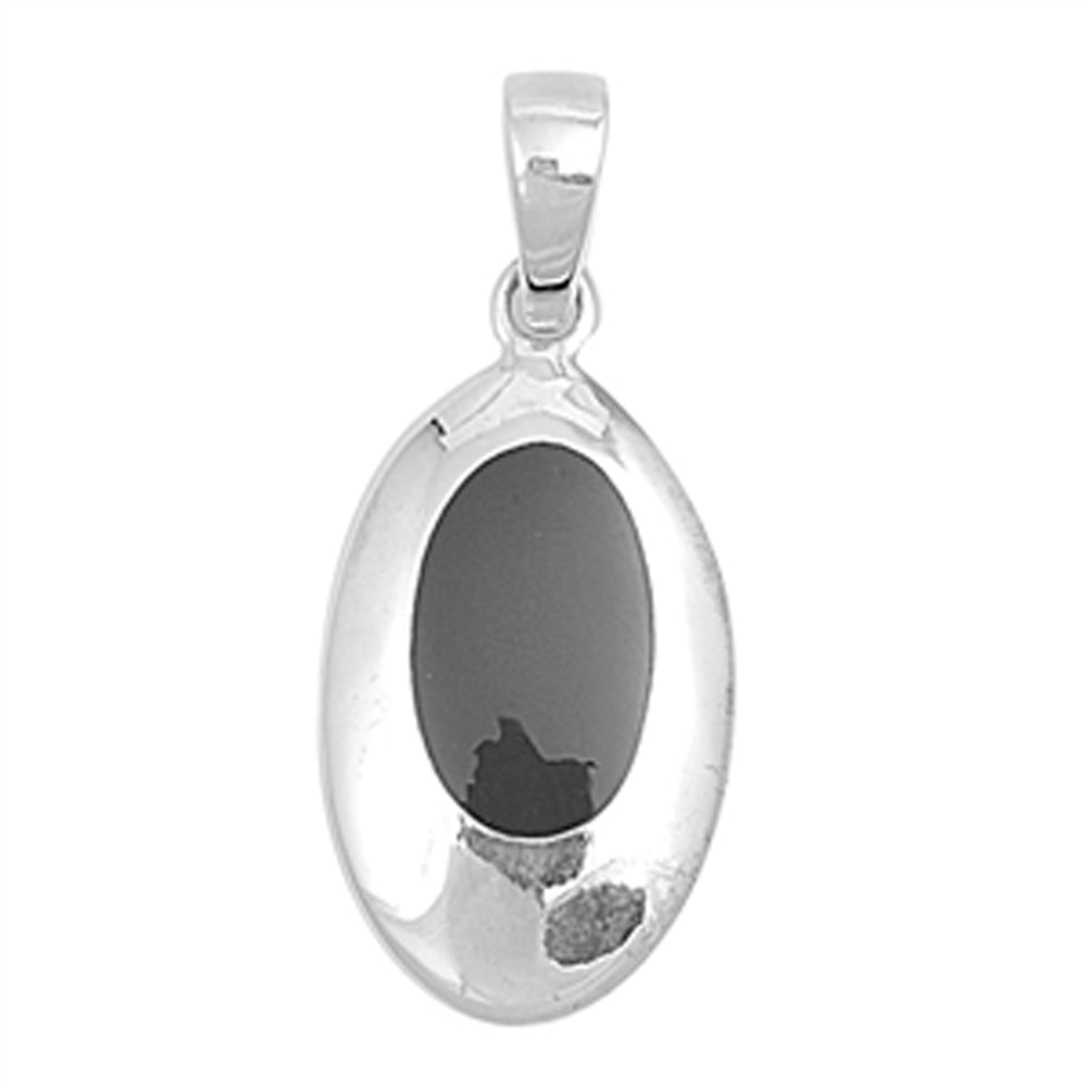Double Inset Oval Pendant Black Simulated Onyx .925 Sterling Silver Charm