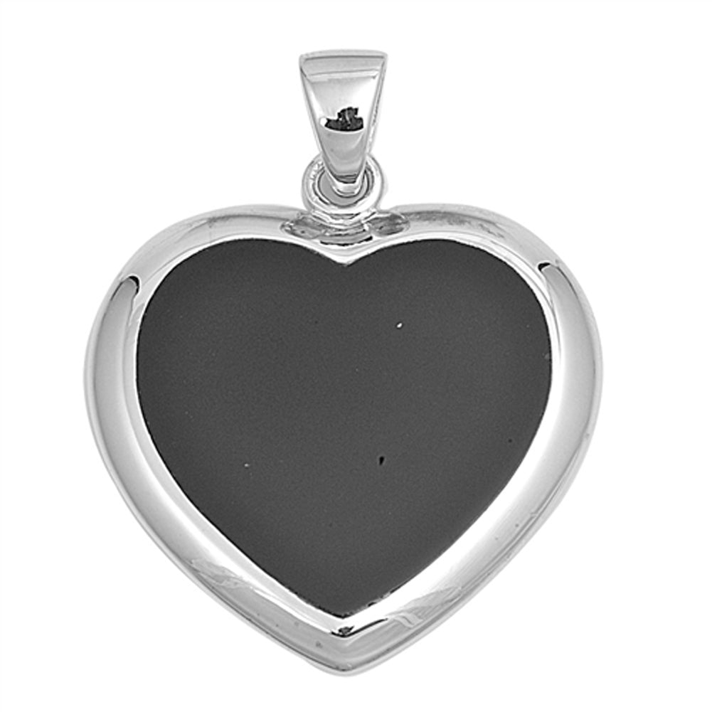 Chunky Promise Heart Pendant Black Simulated Onyx .925 Sterling Silver Charm