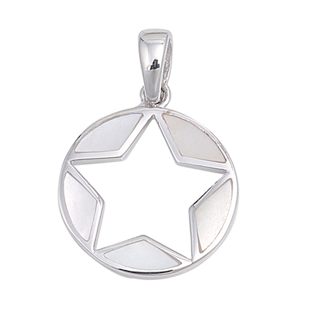 Sterling Silver Circle Fashion Cutout Star Pendant Simulated Mother of Pearl