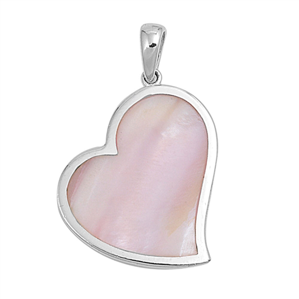 Sterling Silver Sideways Wavy Heart Swirl Simulated Mother of Pearl Pendant