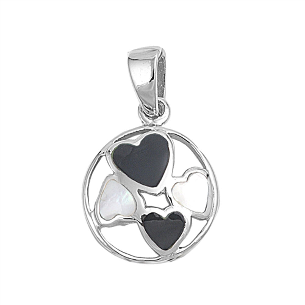 Sterling Silver Circle Multiple Heart Hoop Pendant Simulated Mother of Pearl