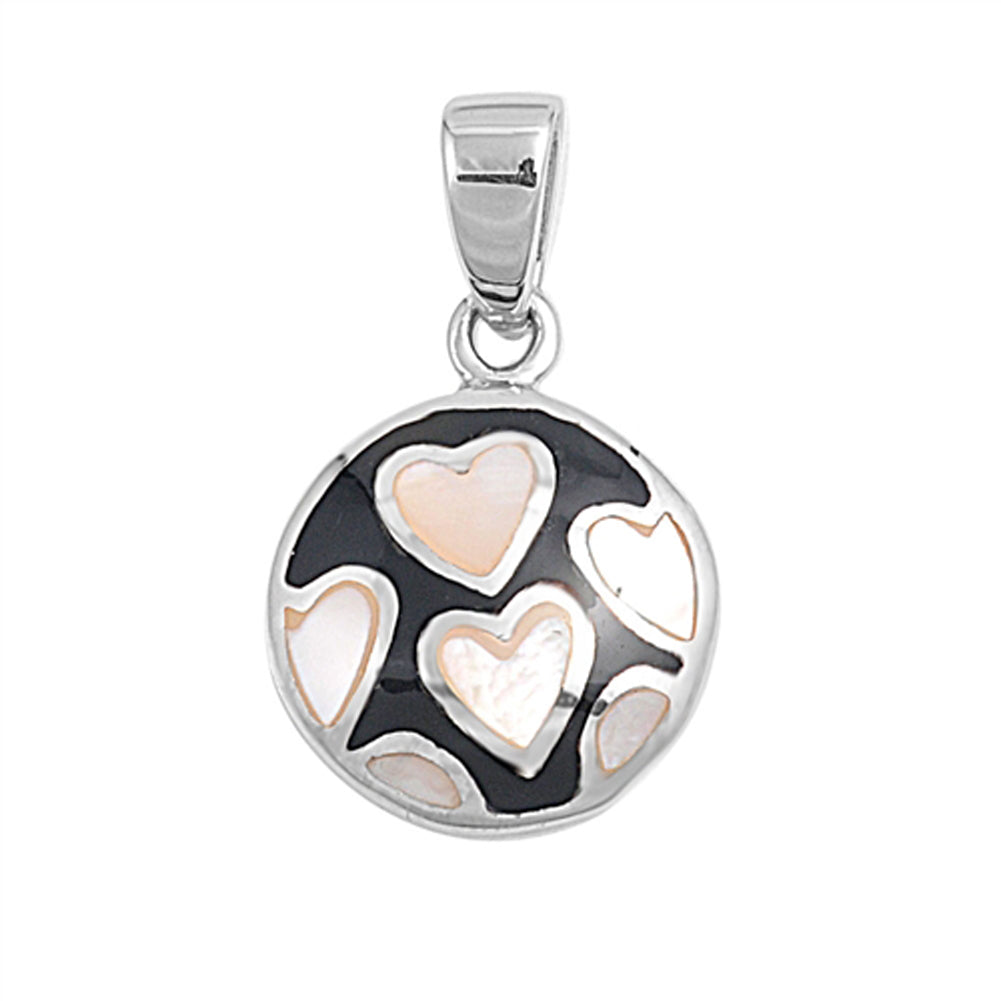 Sterling Silver Cute Multiple Heart Pendant Simulated Mother of Pearl Charm