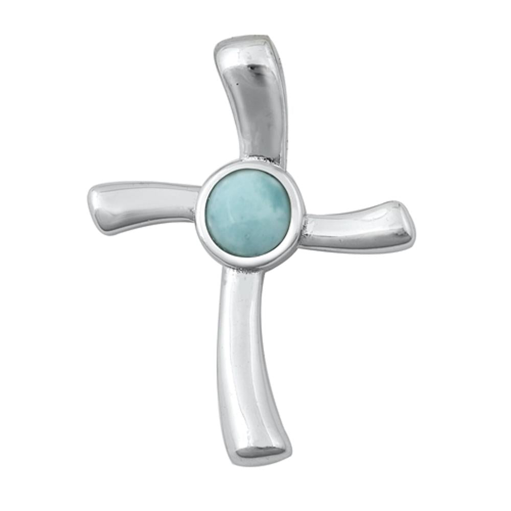 Sterling Silver Polished Larimar Cross Pendant Christian Faith Love Charm 925