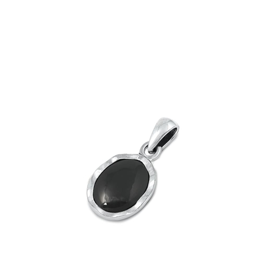 Sterling Silver Classic Black Agate Oxidized Pendant Vintage Charm 925 New
