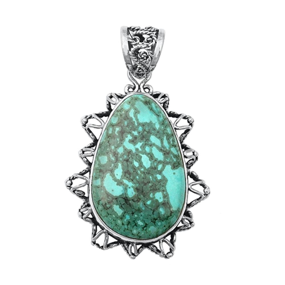 Sterling Silver Polished Ornate Turquoise Pendant Abstract Fashion Charm 925 New
