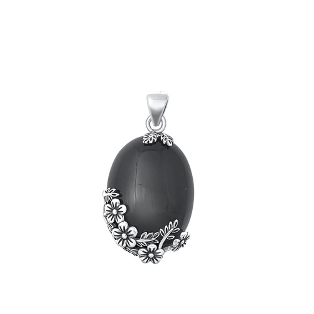Sterling Silver Beautiful Black Agate Pendant Vintage Flower Ornage Charm 925