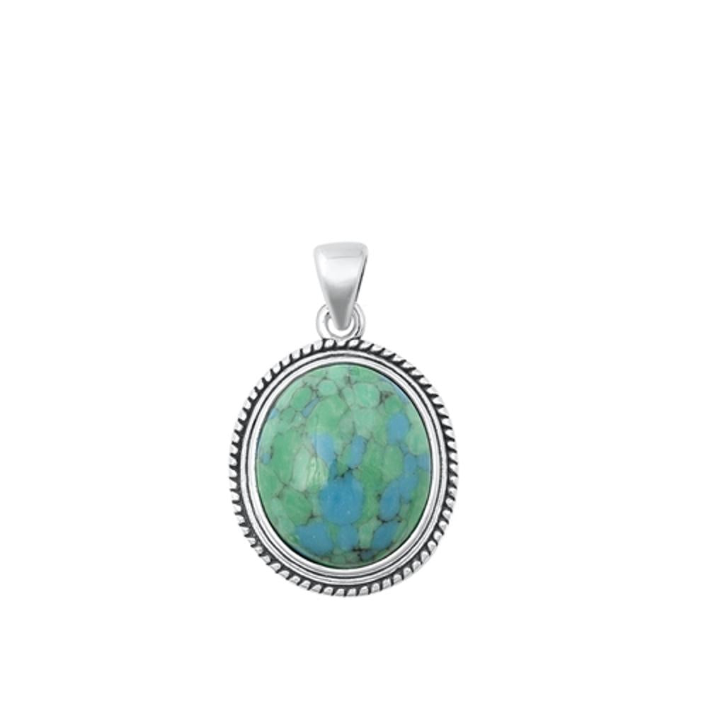Sterling Silver Polished Solitaire Turquoise Pendant Vintage Fashion Charm 925