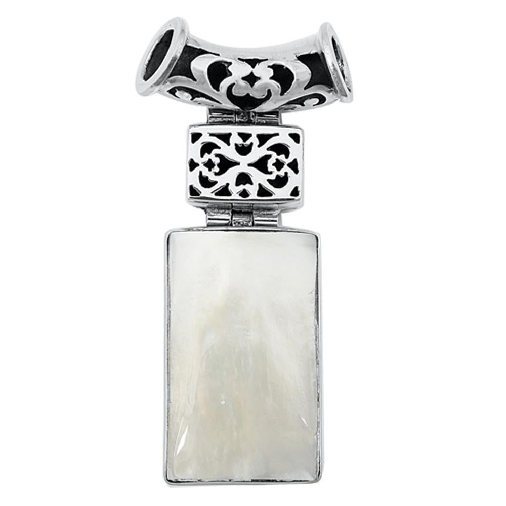 Sterling Silver Classic Mother of Pearl Filigree Slider Pendant Charm 925 New