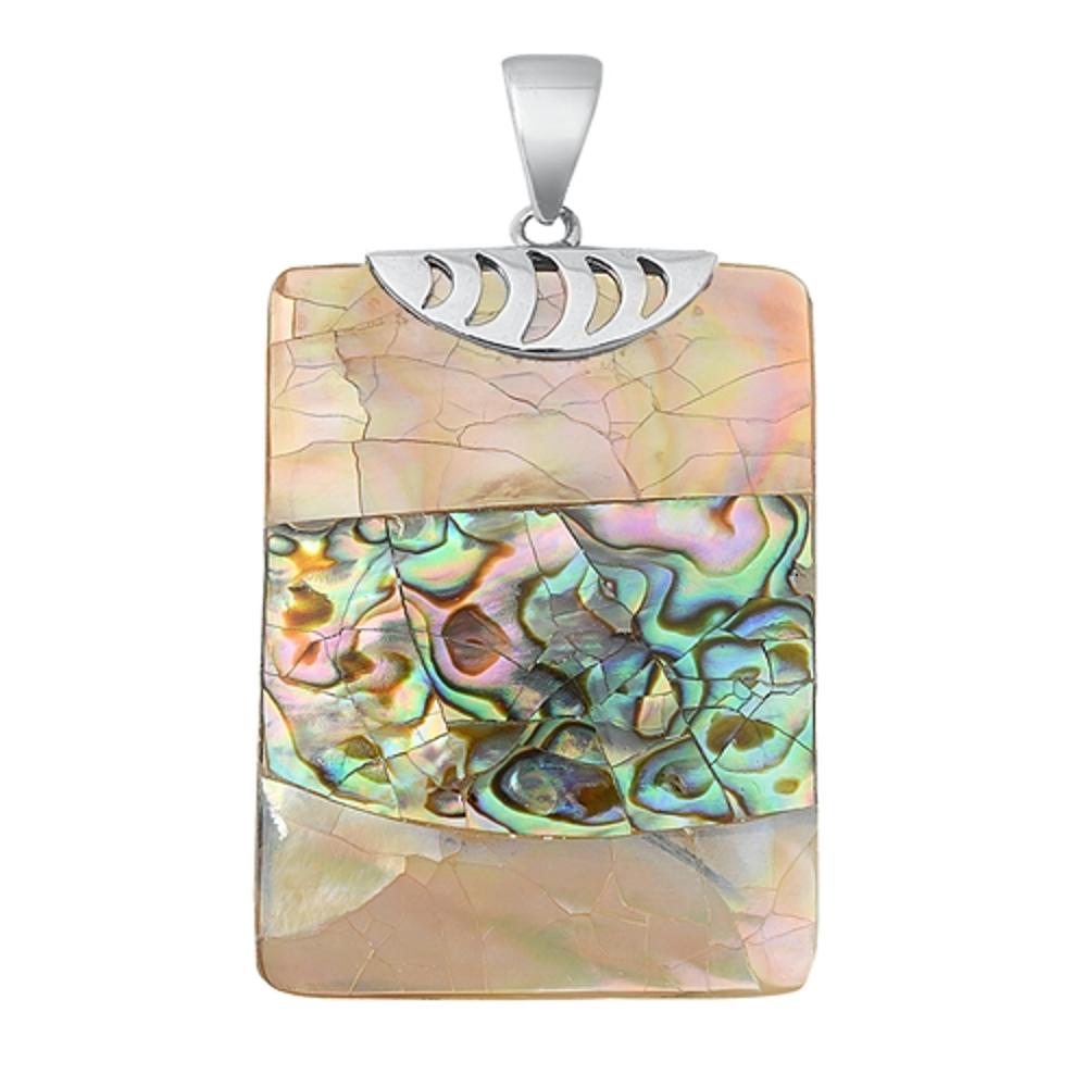 Sterling Silver Cute Mother of Pearl Abalone Pendant Rectangle Charm 925 New