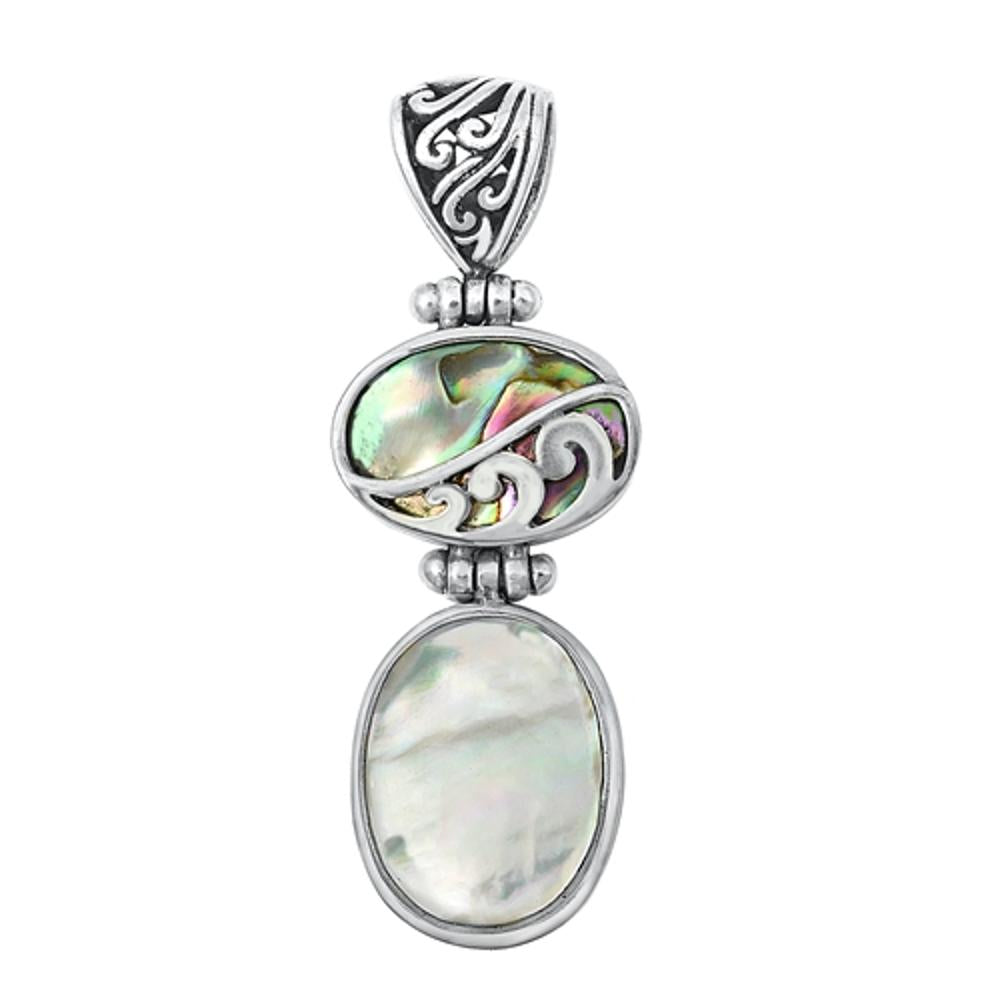 Sterling Silver Classic Abalone Mother of Pearl Oval Filigree Pendant Charm 925