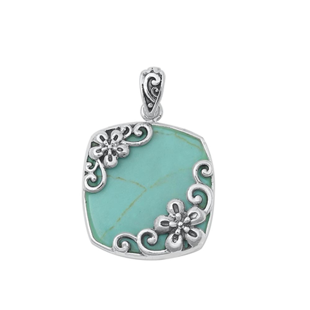 Sterling Silver Classic Turquoise Flower Pendant Vintage Oxidized Charm 925 New