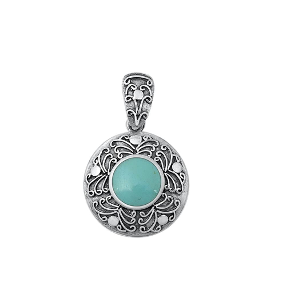 Sterling Silver Polished Turquoise Pendant Oxidized Fashion Charm 925 New