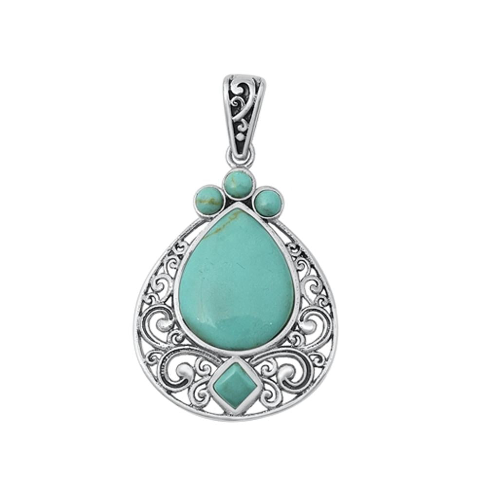 Sterling Silver Wholesale Turquoise Ornate Filigree Pendant Vintage Charm 925