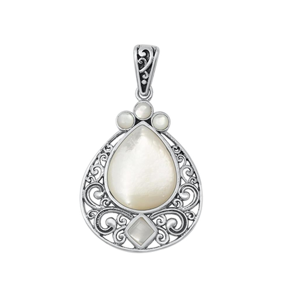 Sterling Silver Unique Mother of Pearl Ornate Filigree Pendant Vintage Charm 925