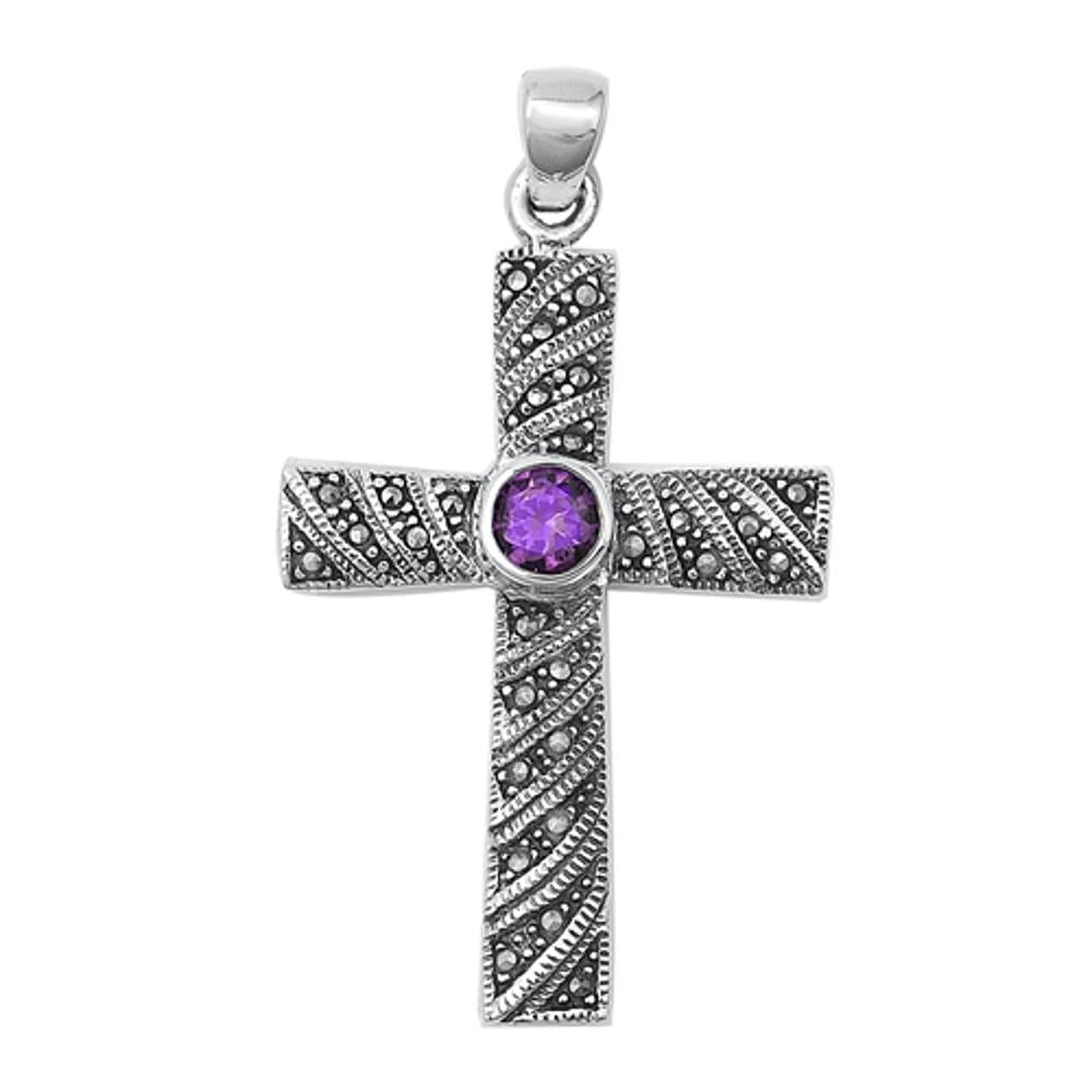 Sterling Silver Wholesale Lavender CZ Cross Pendant Marcasite Charm 925 New