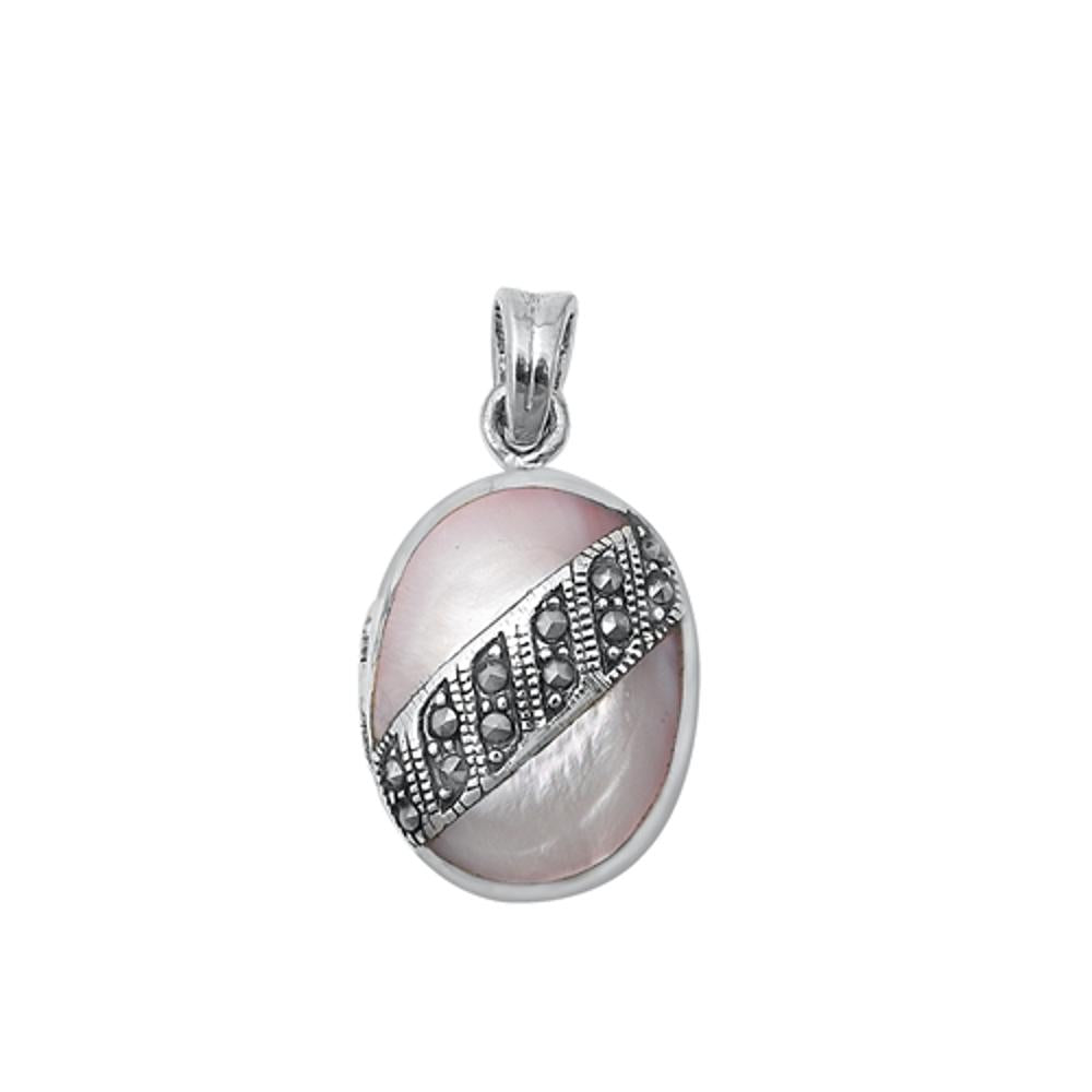 Sterling Silver Unique Mother of Pearl Pendant Marcasite Accents Charm 925 New