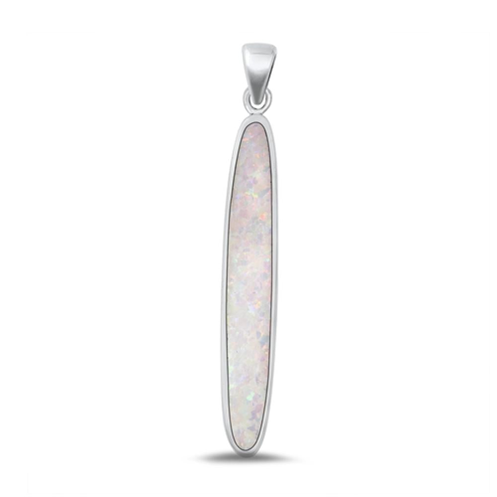 Sterling Silver Beautiful White Synthetic Opal Pendant High Polished Charm .925
