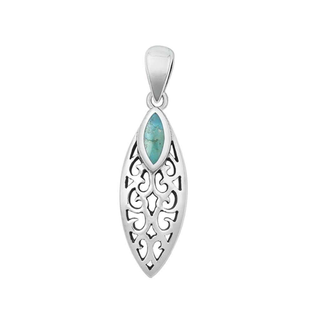 Sterling Silver Fashion Turquoise Victorian Pendant High Polished Charm .925 New