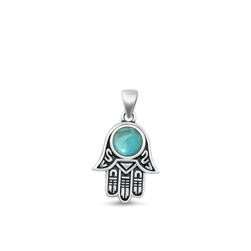 Sterling Silver High Polished Turquoise Hamsa Pendant Oxidized Charm .925 New