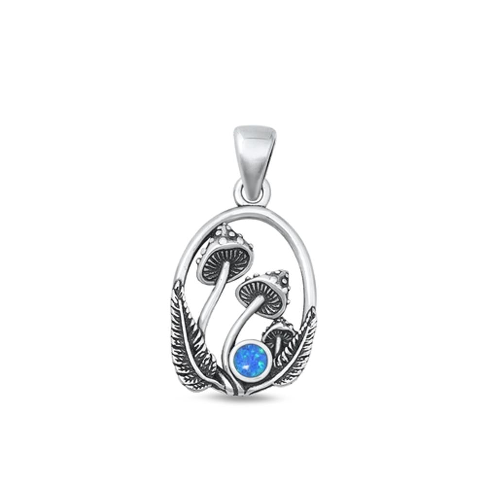 Sterling Silver Oxidized Lab Opal Mushroom Flower Cutout Pendant .925 New