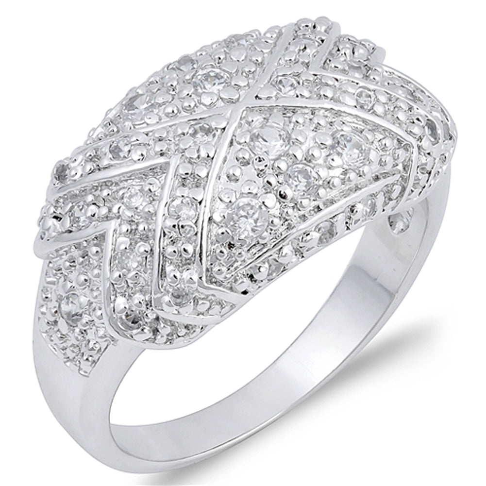 SKU: RC102667 Face Height: 13mm Band Width: 3mm Stone Type: Clear CZMetal: 925 Sterling Silver