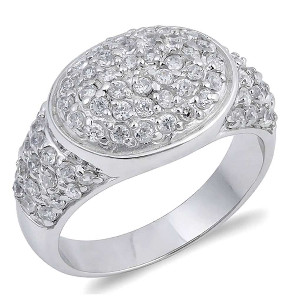 SKU: RC102682 Face Height: 13mm Band Width: 4mm Stone Type: Clear CZMetal: 925 Sterling Silver