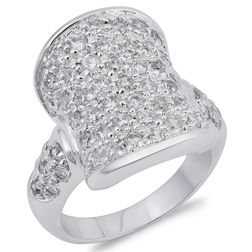 SKU: RC102700 Face Height: 20mm Band Width: 4mm Stone Type: Clear CZMetal: 925 Sterling Silver