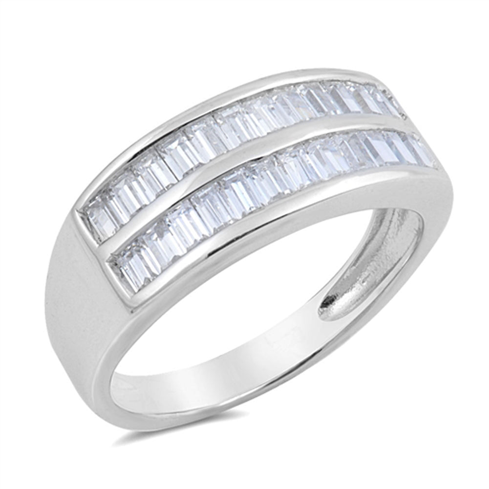 SKU: RC102765 Face Height: 8mm Band Width: 3mm Stone Type: Clear CZMetal: 925 Sterling Silver