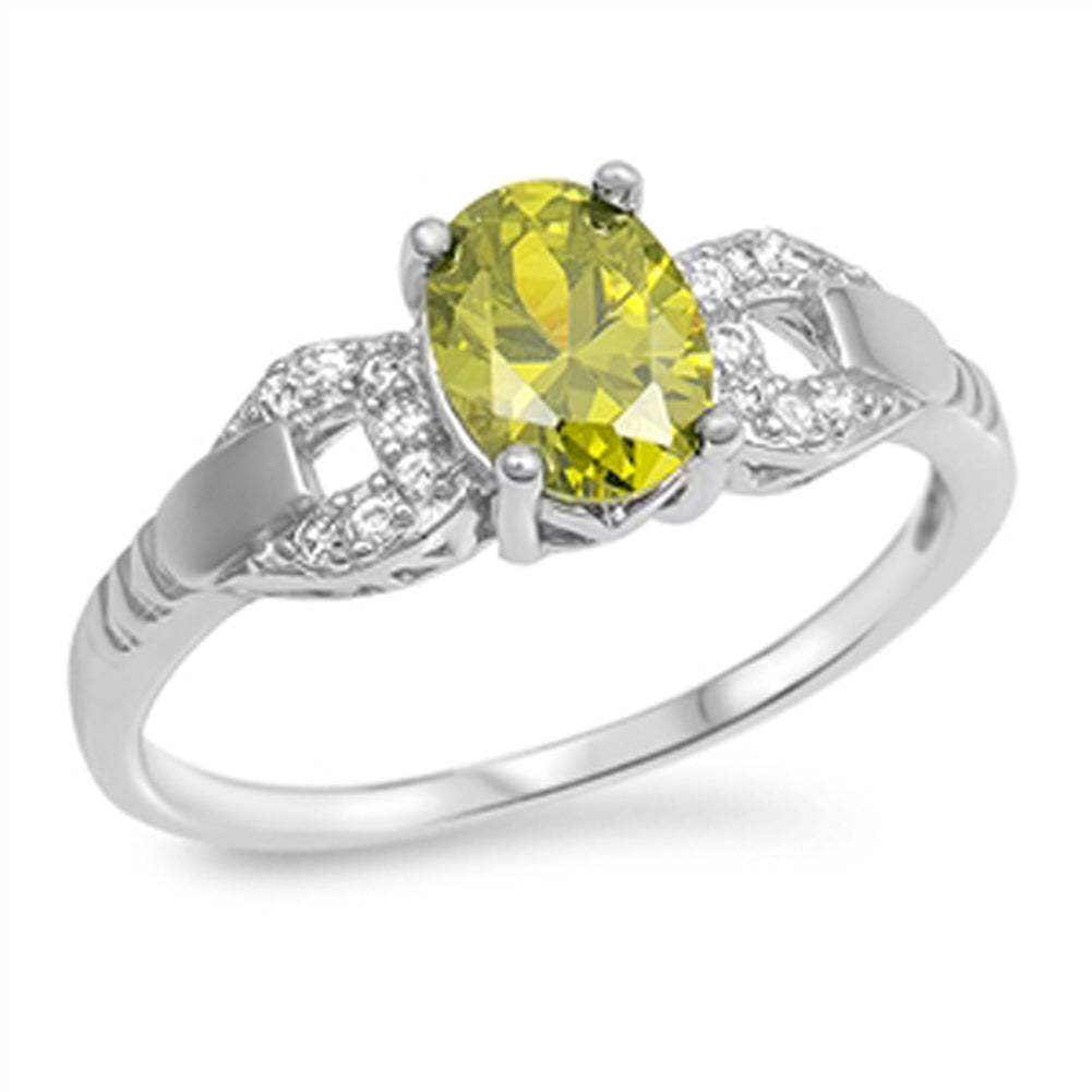 SKU: RC103401 Face Height: 8mm Band Width: 2mm Stone Type: Green Yellow CZMetal: 925 Sterling Silver