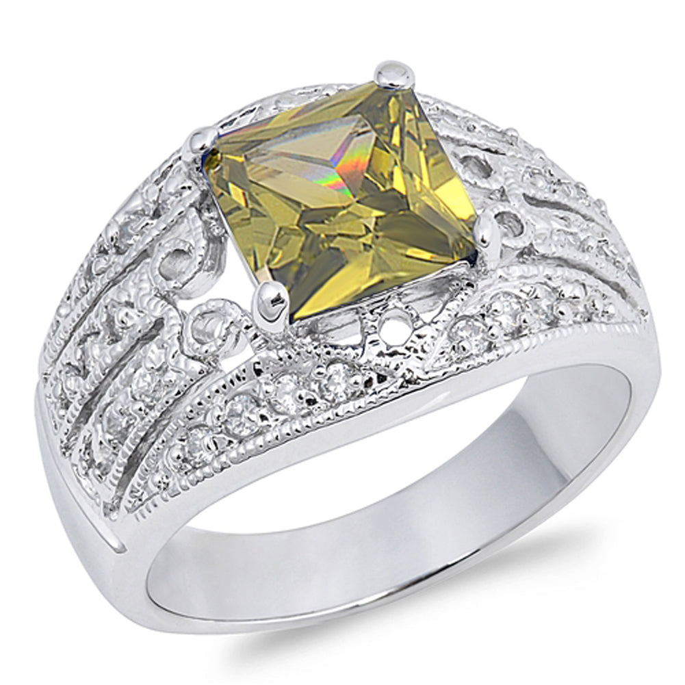 SKU: RC103974 Face Height: 14mm Band Width: 4mm Stone Type: Green Yellow CZMetal: 925 Sterling Silver