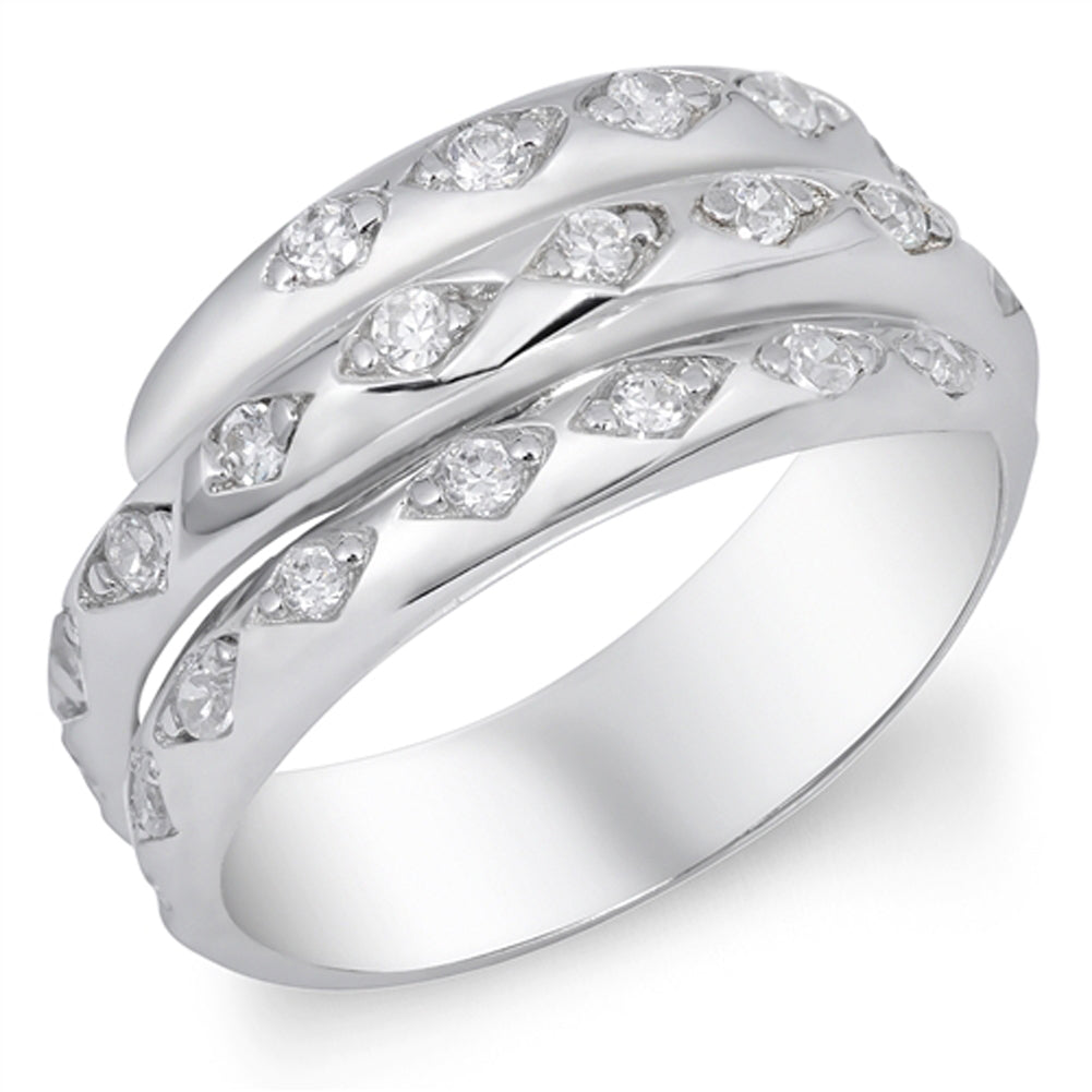 SKU: RC104091 Face Height: 9mm Band Width: 5mm Stone Type: Clear CZMetal: 925 Sterling Silver