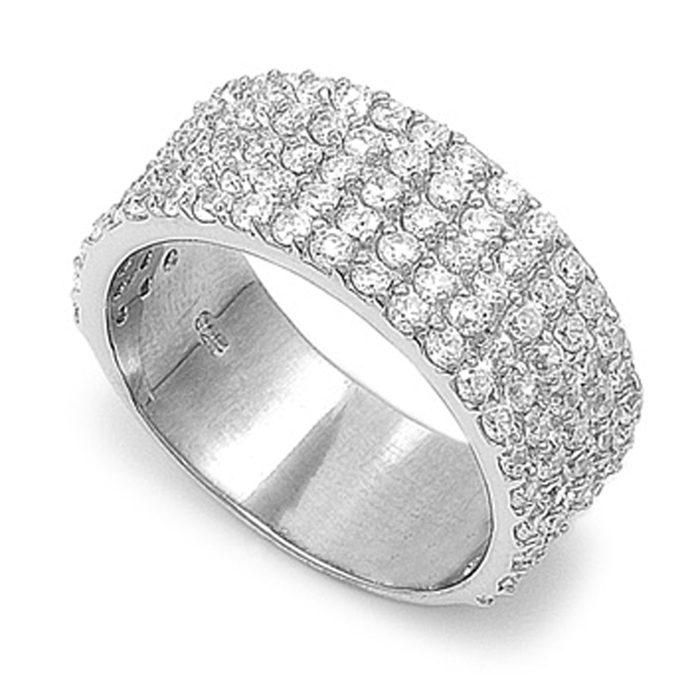 SKU: RC104138 Face Height: 9mm Band Width: 9mm Stone Type: Clear CZMetal: 925 Sterling Silver