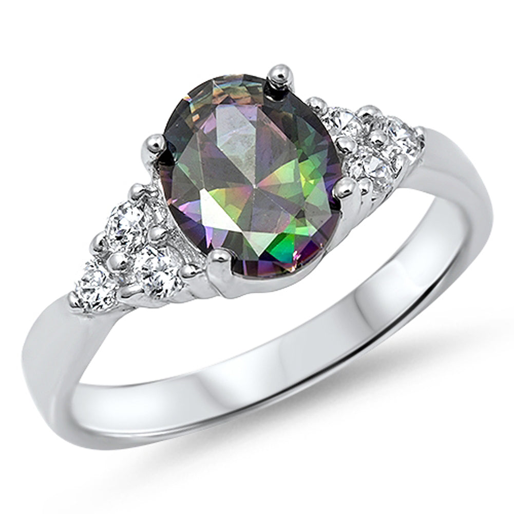SKU: RC104647 Face Height: 9mm Stone Type: Rainbow CZMetal: 925 Sterling Silver