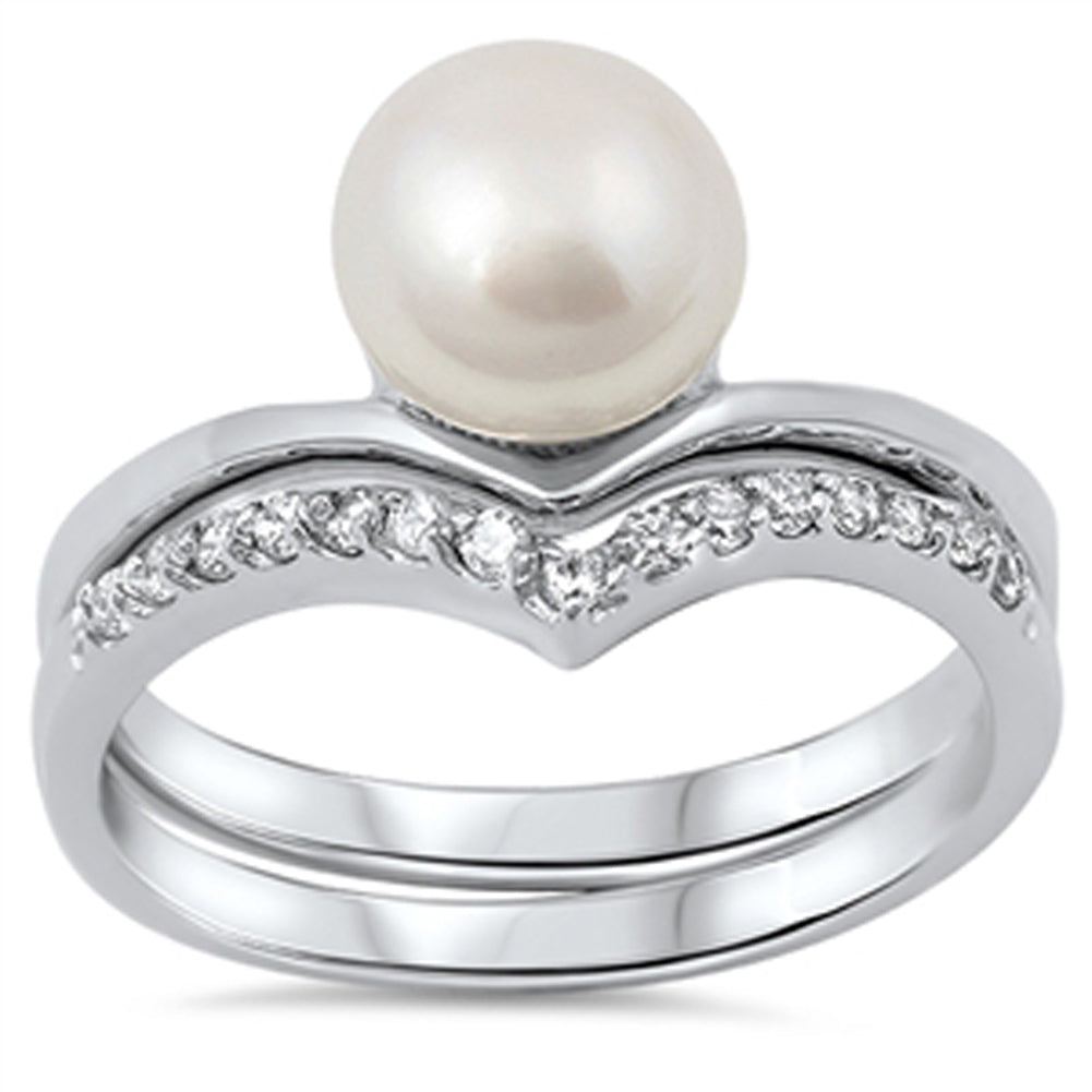 SKU: RC105350 Face Height: 4mm Band Width: 10mm Stone Type: Simulated PearlStone Type: Clear CZMetal: 925 Sterling Silver